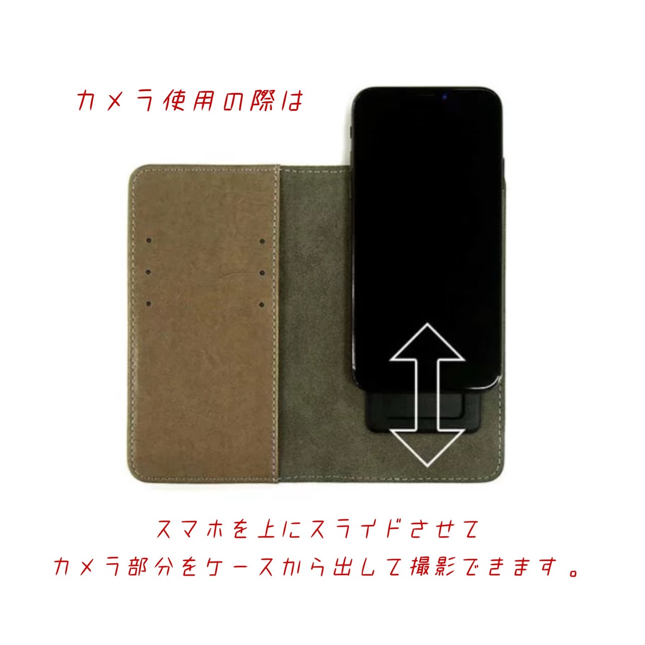 撮影したい時は、スライドパーツを上にスライドすればケースからカメラが現れて簡単に撮影可能です。